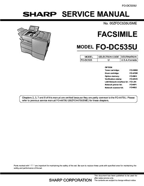 At present you are looking for an Sharp Fo Dc535u Service Manual Parts Guide example that will we provide here in some type of document formats many of these as PDF, Doc, Strength Point, and in addition images that will will make it easier for you to create an Sharp Fo Dc535u Service Manual Parts Guide yourself. For a more clear look, you are able to open a few examples below. All the illustrations about Sharp Fo Dc535u Service Manual Parts Guide on this website, we get from a number of sources so you can create a better record of your own.If the search you acquire here does not match up what you are searching for, please utilize the lookup feature that we have provided here. You are usually free to download anything that we provide here, it will not cost you typically the slightest.